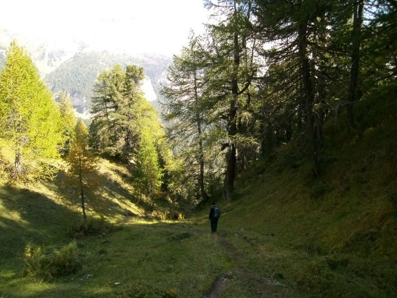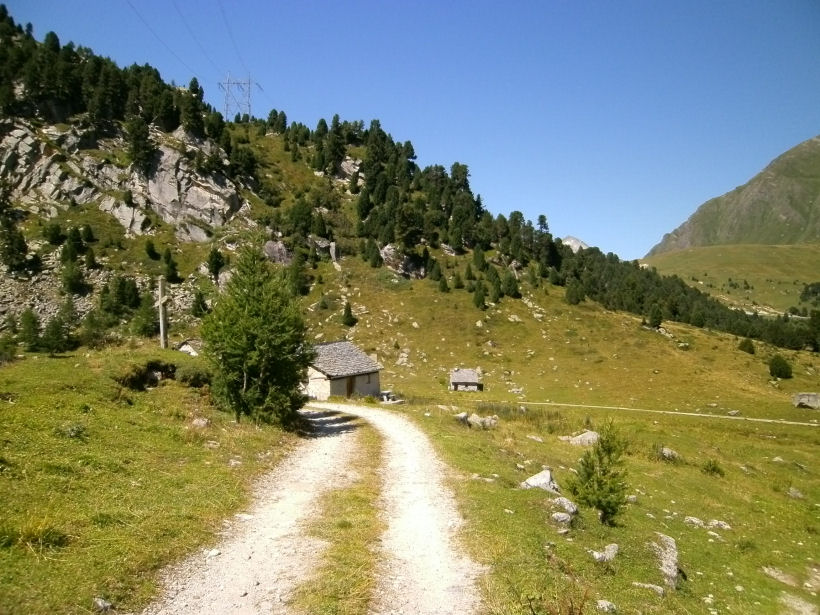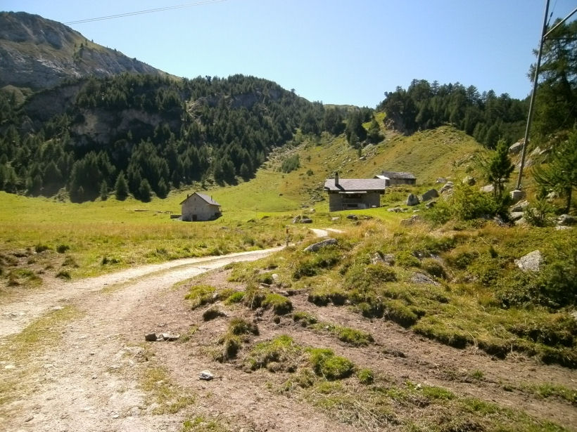 Im Campo Solario angekommen, können wir entscheiden ob wir die kurze Variante - wieder zurück auf die Alpe Casaccia - oder den Weg zum Weiler Stabbio Nuovo nehmen wollen.