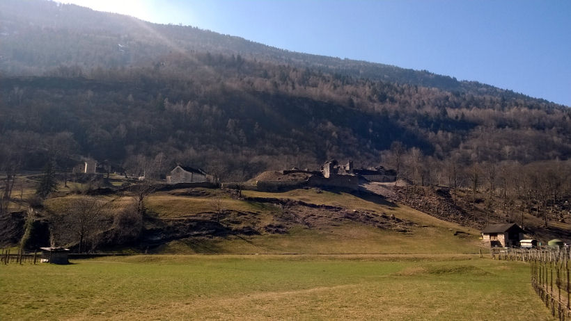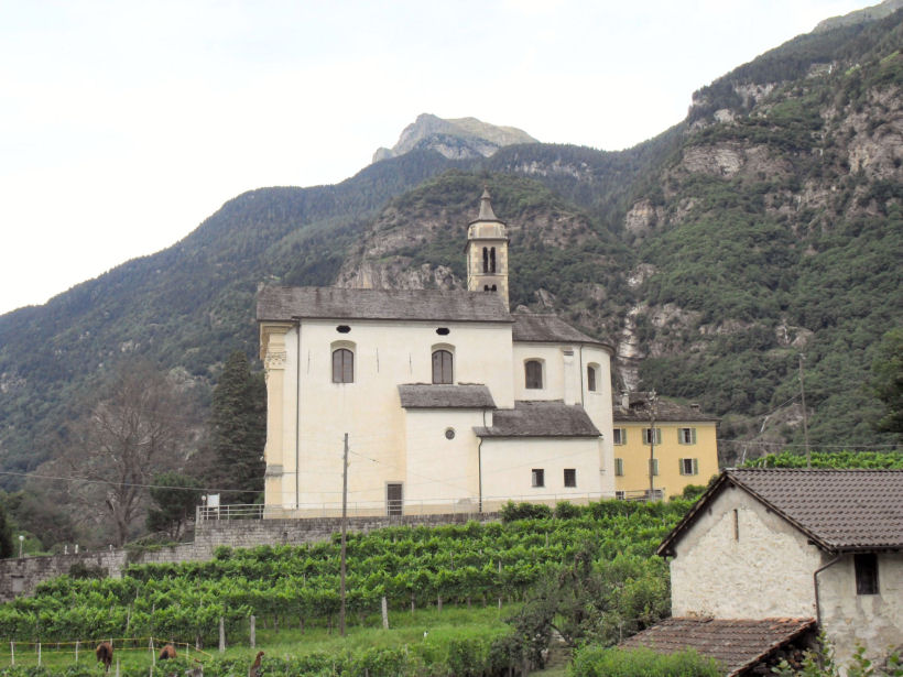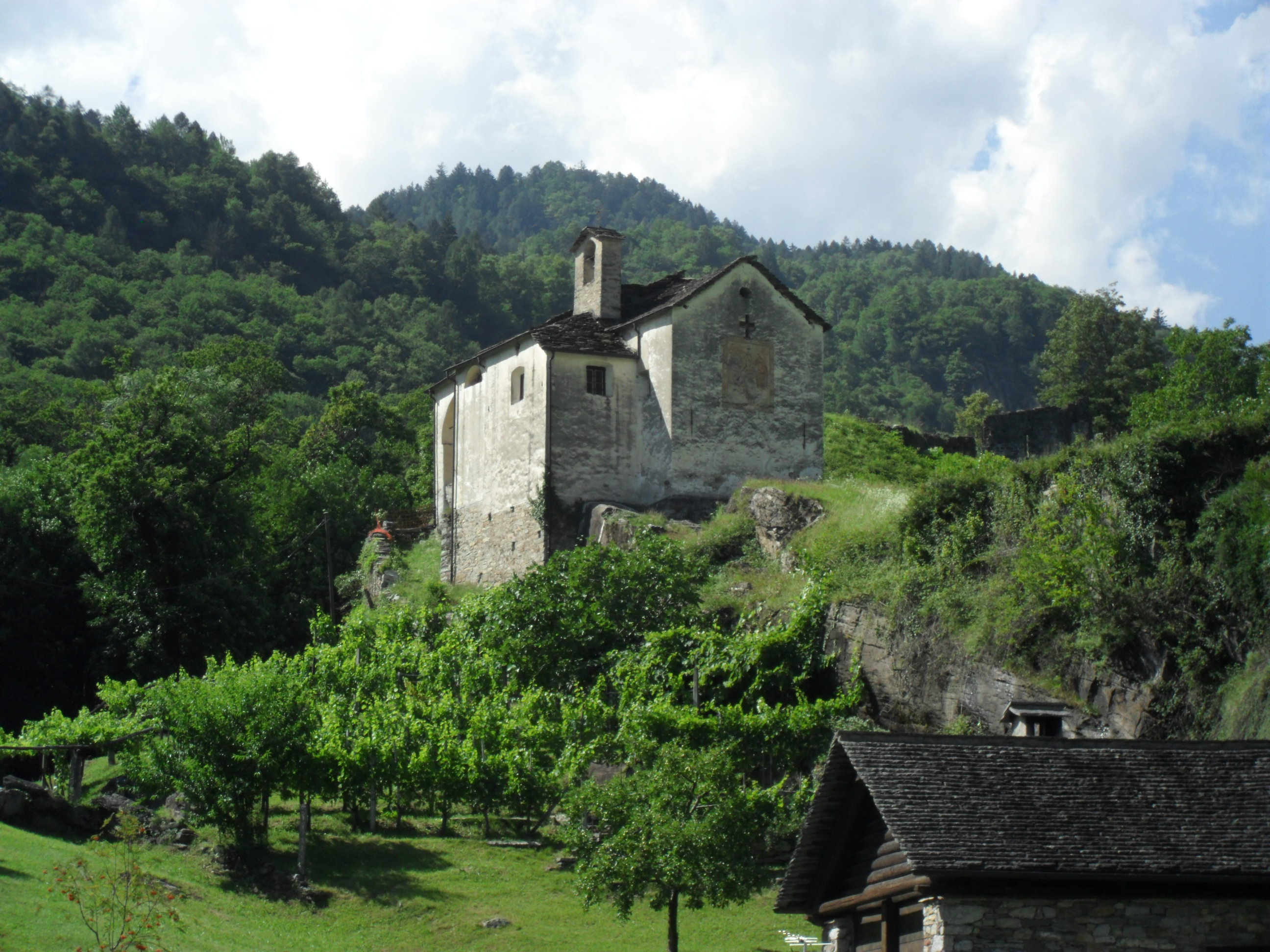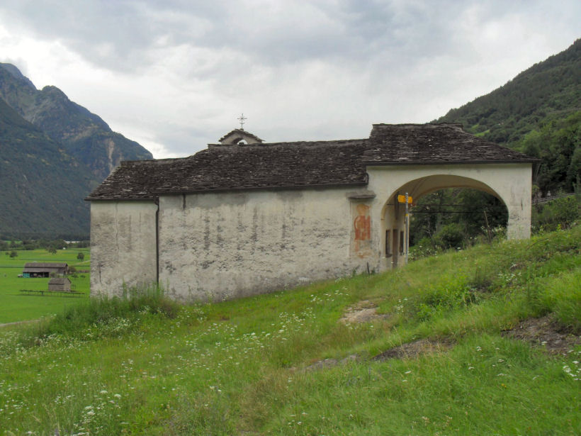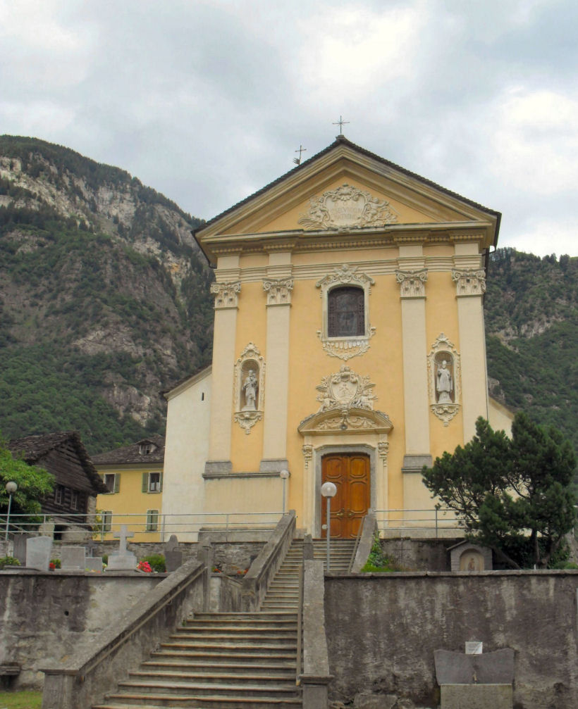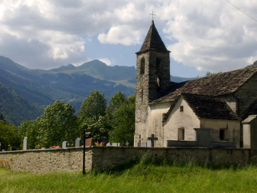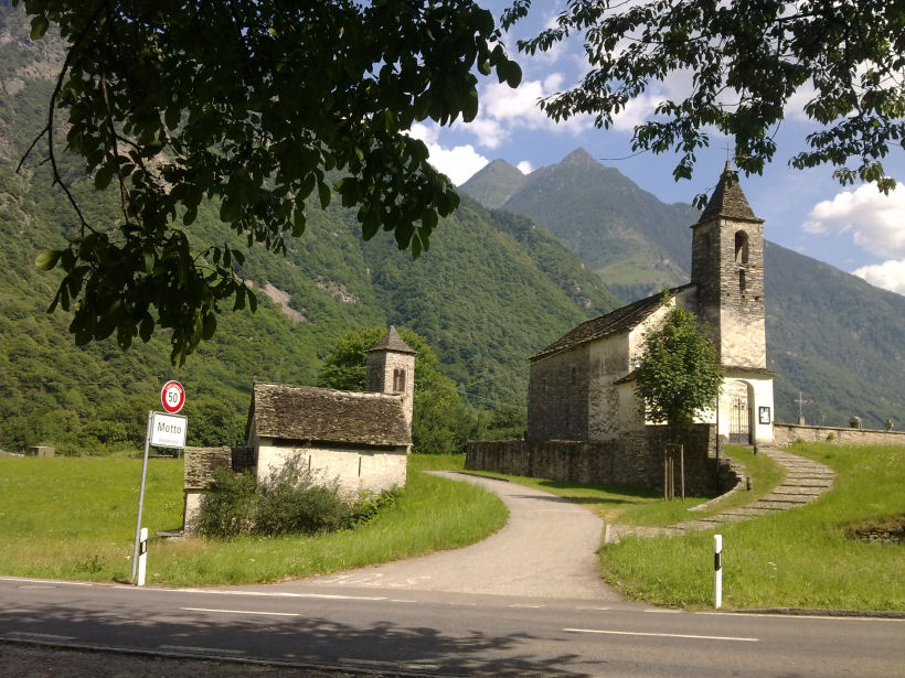 Die kleine romanische, bei der Ortschaft Motto gelegene Kirche entstand im 13. Jh. anstelle eines frühmittel - alterlichen Kultbaus des späten 6. Jh. 1581 wurde das Gebäude erweitert und mit einem Glockenturm versehen. An der Südseite des Schiffs sind spätgotische Fresken eines unbekannten lombardischen Meisters aus dem Ende des 14. Jh. erhalten.Das Kircheninnere ist mit Wandmalereien aus dem 14.-19. Jh. geschmückt.