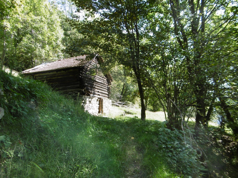 Nach einer ersten Lichtung und einem weiteren Aufstieg erreichen wir Valegia mit einem Stadel auf 937m ü.M. Hier trennt sich der Weg, nach links zur Strada alta und rechts nach Polmengo und Faido.