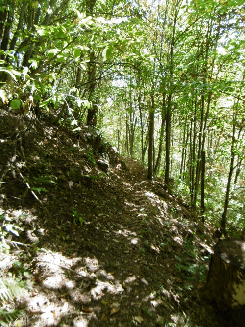 Der Weg nach Mairengo ist wegen eines Waldbrandes 2017 nicht mehr angeschrieben aber immer noch begehbar. Er führt uns ca. 1 km durch den Wald und wir erreichen bald das Dorf Mairengo. Die Osteria lädt zu einer kurzen Rast ein, in einem schönen Garten. Zu Mairengo gehören Tortengo und Polmengo.