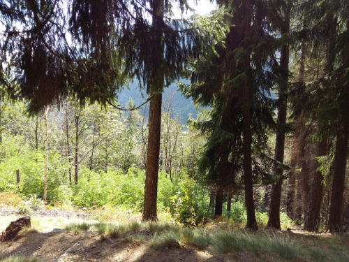Nach der Schlucht überqueren wir die Kantonsstrasse und den Fluss Ticino und gehen ein kleines Stück dem Fluss entlang, bis der Wegweiser uns links in den Wald und hinauf führt.