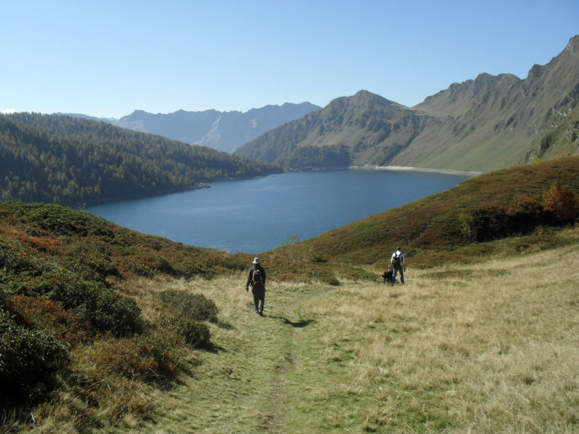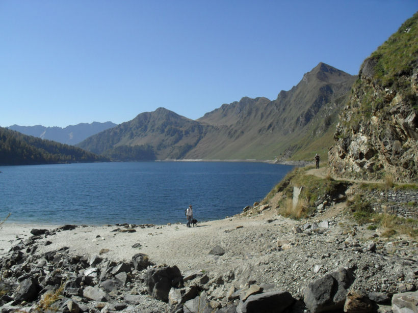 Am Anfang wandern wir der Strasse und dem See entlang und steigen am Ende des Sees hinauf zur Alpe Piora. Von dort geht es wieder hinunter zum See, über einen steilen, schmalen Pfad. Wer den Aufstieg zur Alpe Piora nicht machen will, kann weiter dem See entlang laufen.