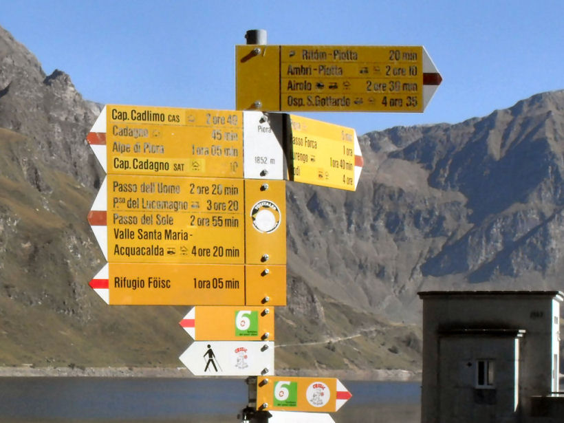 Ritom See die Staumauer Ritom See der Wegweiser Ritom See das Restaurant Ritom See